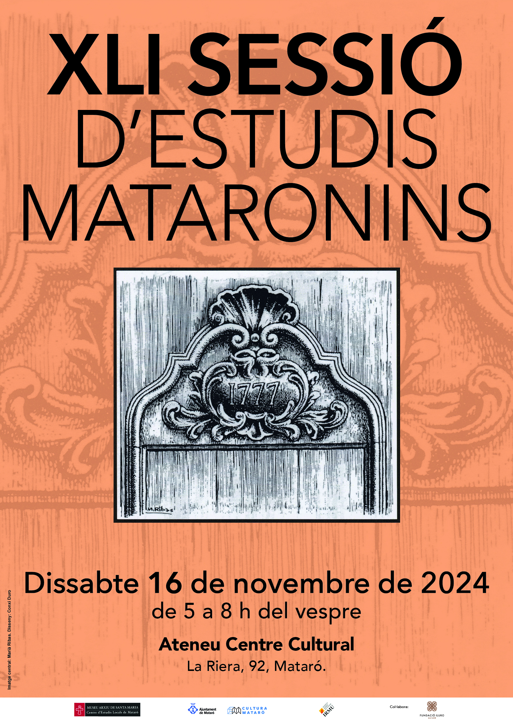 El Museu Arxiu de Santa Maria – Centre d’Estudis Locals de Mataró organitza la 41a Sessió d’Estudis Mataronins, una trobada d’estudiosos i estudioses que presenten en forma de comunicacions els seus treballs de recerca sobre temes d’història, arqueologia, geografia, etnografia, literatura, etc., en els àmbits de Mataró i el Maresme. Es farà dissabte 16 de novembre de 2024, de les 5 de la tarda a les 8 del vespre a l’Ateneu Centre Cultural (la Riera, 92). Enguany celebrem la fita d’haver arribat a la publicació del 40è volum de les Sessions i commemorem quatre dècades d’estudi de la història local, raons per les quals celebrarem la Sessió al bell mig de la Riera per gentilesa de la Fundació Iluro. El conjunt de les Sessions ha generat un corpus acadèmic notable de més de sis-centes comunicacions, les quals són consultables en els volums en paper que s’editen cada any i també en format digital dins el web de Revistes Catalanes amb Accés Obert (www.raco.cat). Acompanyem títol de les comunicacions presentades